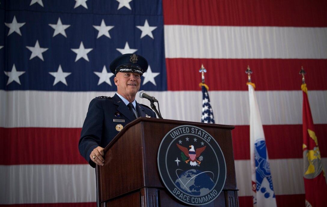Gen. John W. “Jay” Raymond, U.S. Space Command commander, recognized the establishment of the nation’s 11th combatant command in a joint ceremony at Peterson Air Force Base, Sept. 9 2019. The USSPACECOM mission is to deter aggression and conflict, defend U.S. and allied freedom of action, deliver space combat power for the Joint/Combined force, and develop joint warfighters to advance U.S. and allied interests in, from, and through the space domain. (U.S. Air Force photo by Staff Sgt. Dennis Hoffman)