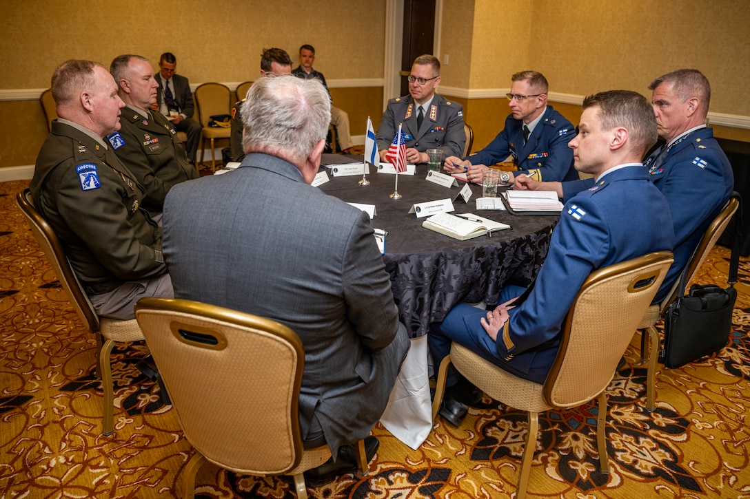 Maj. Gen. Brian Gibson, U.S. Space Command strategy, plans and policy director, speaks with Maj. Gen. Timo Herranen, Finnish Air Force commander, at the 40th Annual Space Symposium in Colorado Springs, Colorado, April 9, 2025. In line with USSPACECOM commander’s third element of victory, they talked about strengthening relationships as space partner nations. USSPACECOM, working with Allies and Partners, plans, executes, and integrates military spacepower into multi-domain global operations in order to deter aggression, defend national interests, and when necessary, defeat threats.